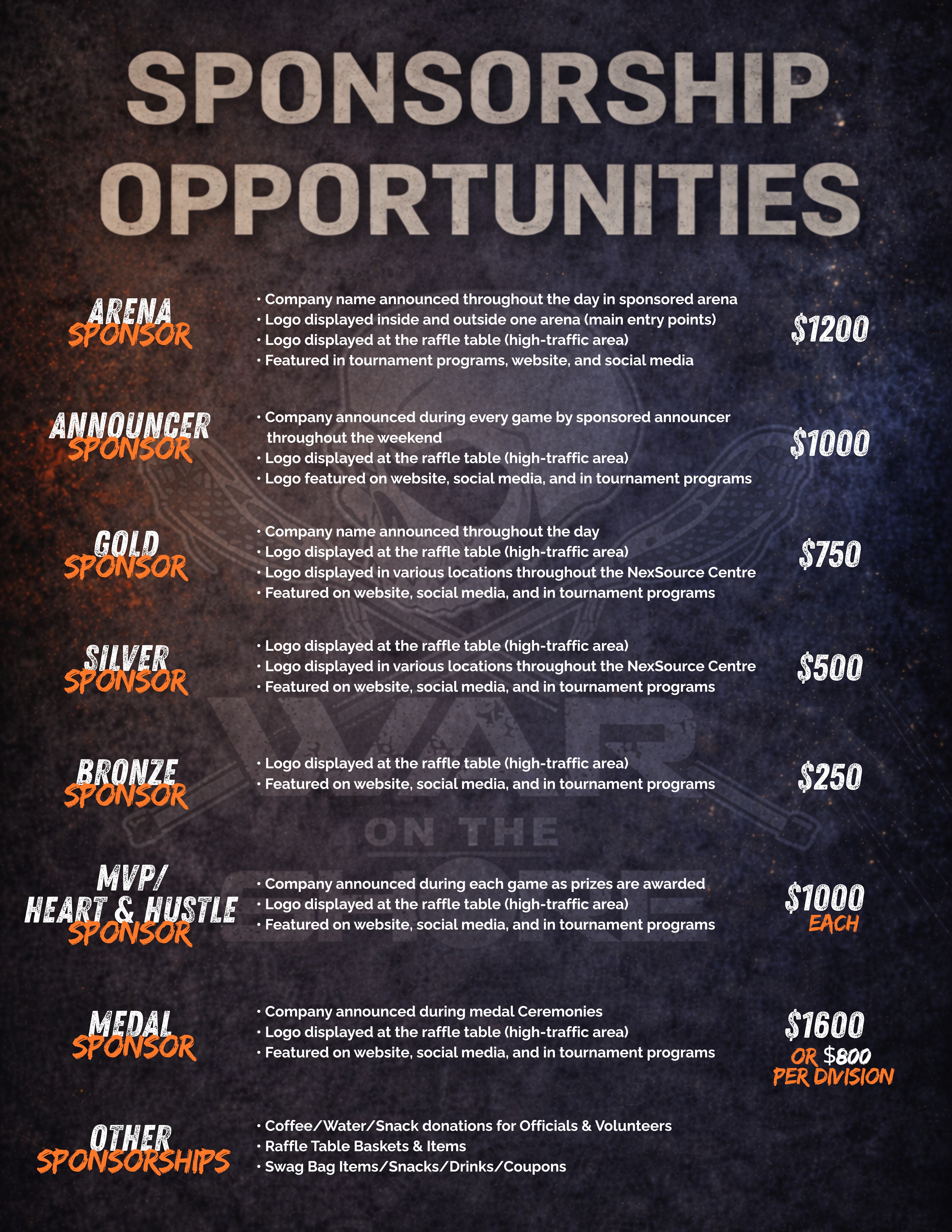 Sponsor and Donation opportunities of all sizes available.